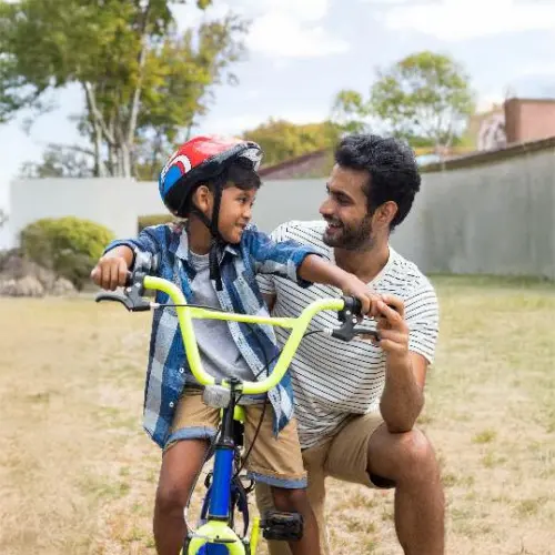 Kids cycling safely on wide, well-looped internal roads