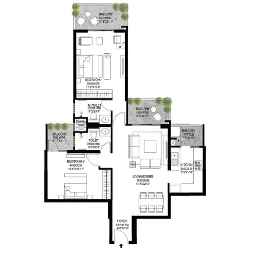 | 2 BHK Type A | ~930 sq ft | ₹11k – ₹12k | ₹1.02 Cr – ₹1.12 Cr |