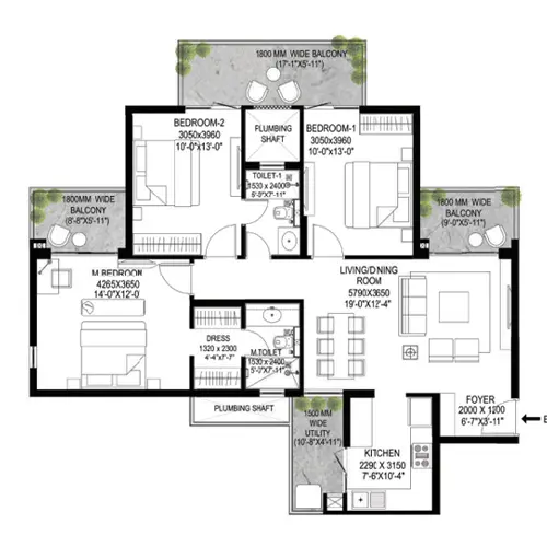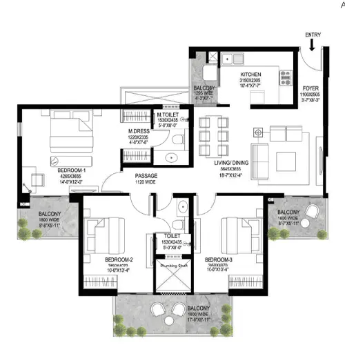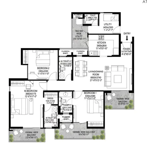 | 3 BHK + Utility (Large) | ~1,411 sq ft | ₹11k – ₹12k | ₹1.55 Cr – ₹1.69 Cr |