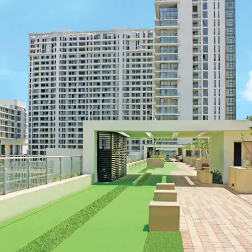 The 9-hole executive golf course, the 250-metre rooftop jogging track, the 1.2 lakh sq ft clubhouse, the temperature-controlled pool, the sports courts, the spa, the mini theatre, the business facilities, and the landscaped open areas all work together to create a daily living environment that feels curated rather than crowded.