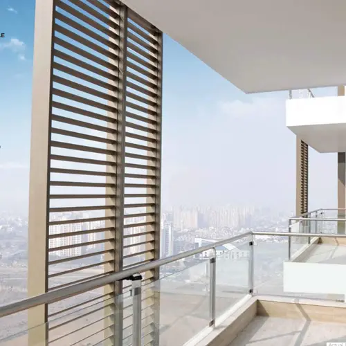 Unique metallic privacy blinds that double as sunshades, standard on all Balconies & Terraces.