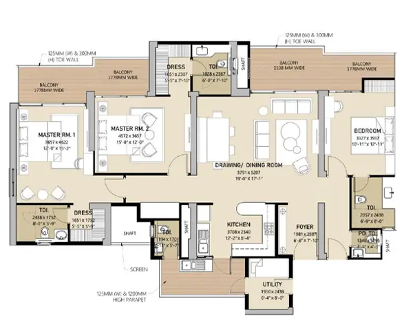 - ●Dedicated dresser/wardrobe space in Master Bedrooms.