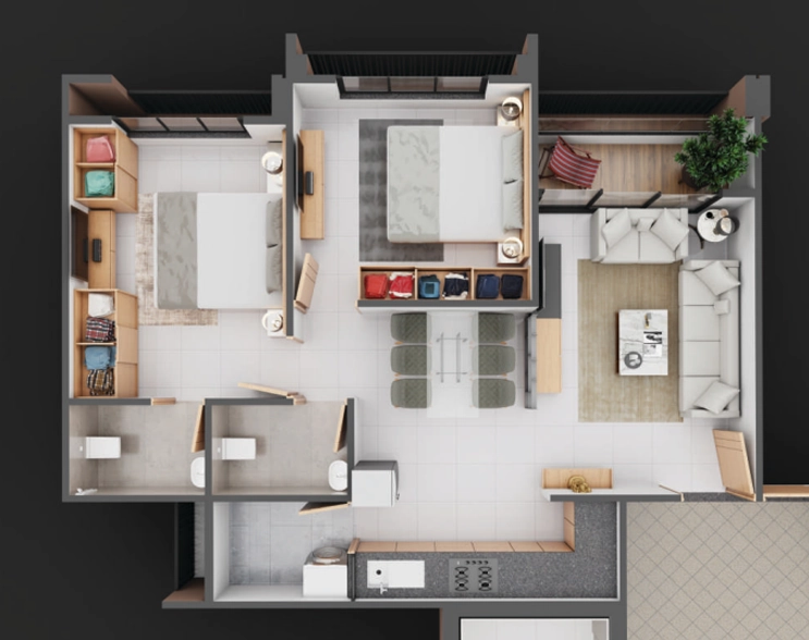 Vitrified Tiles Flooring in all rooms for a seamless and premium look.