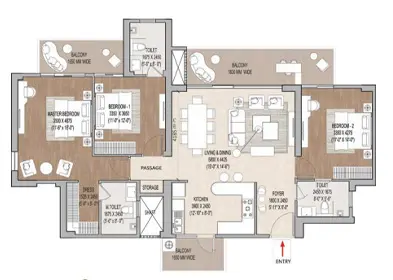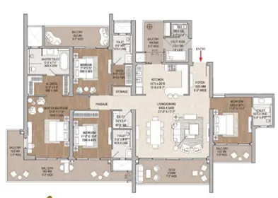 The 3 BHK at Cloverdale SPR is a beautifully proportioned home featuring a spacious living area, master suite with dedicated dressing room, and an entrance foyer that sets a premium tone. Every balcony opens to lush views.