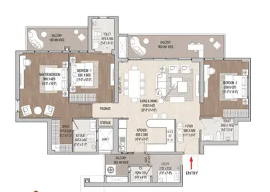 Offering the practical luxury of a dedicated utility room for staff or storage. Ideal for families that value elegance and everyday functionality with a full-sized 3 BHK layout and an impressive foyer.