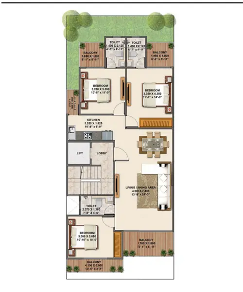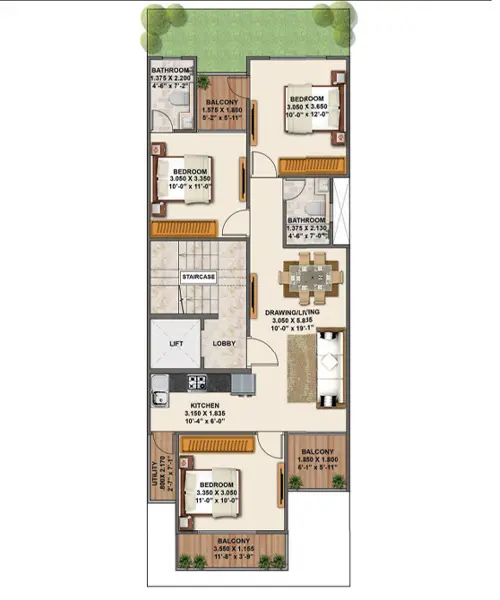 The project offers homes ranging from 745 sq ft to 1,550 sq ft super area. The smaller units are generally suited to compact family living or entry-level ownership, while the larger 3 BHK floors are better for families that need more room and flexibility.