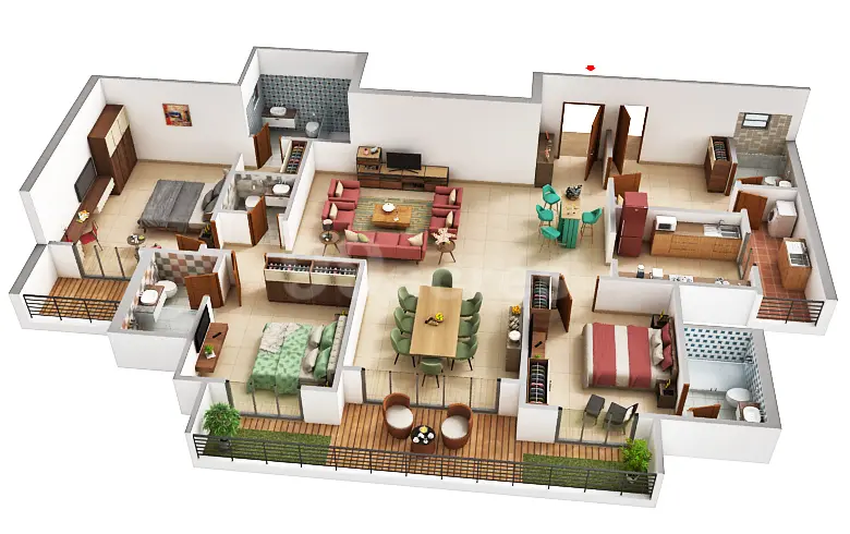 Premium Italian/Spanish marble in Living & Dining. Engineered wood or premium vitrified tiles in bedrooms.